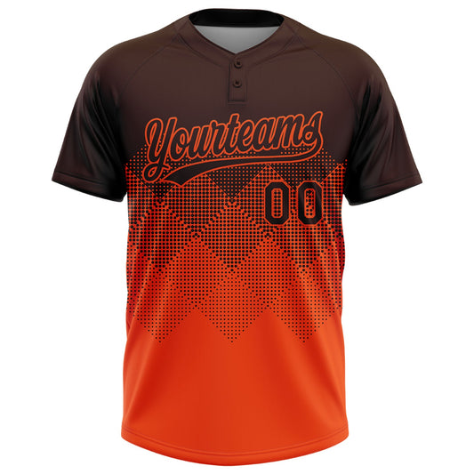 Custom Brown Orange 3D Gradient Square Shape Two-Button Unisex Softball Jersey Limited