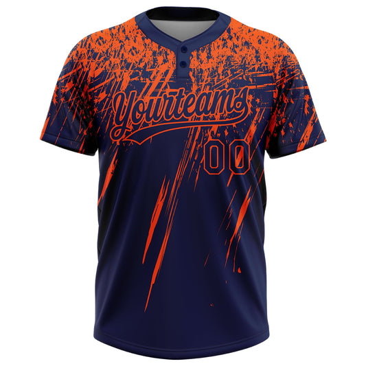 Custom Navy Orange 3D Pattern Abstract Sharp Shape Two-Button Unisex Softball Jersey Limited