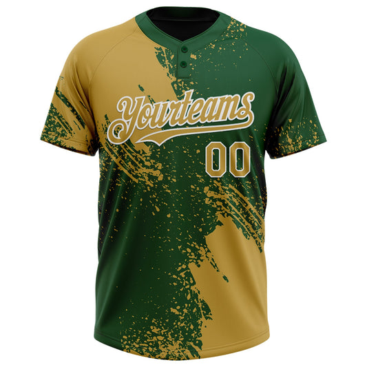 Custom Old Gold Kelly Green-White 3D Pattern Abstract Brush Stroke Two-Button Unisex Softball Jersey Limited