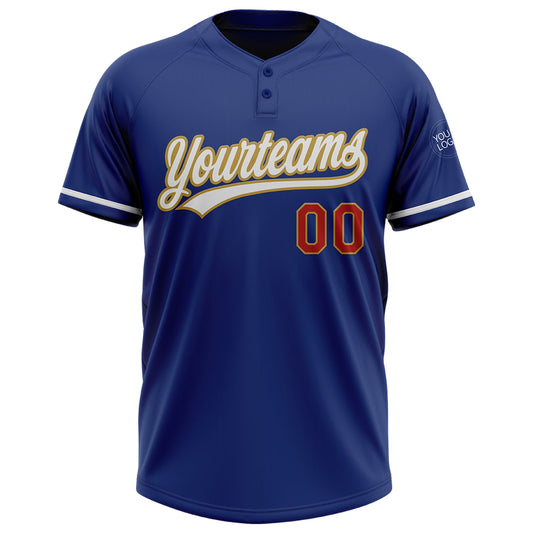 Custom Royal White Old Gold-Red Two-Button Unisex Softball Jersey Limited