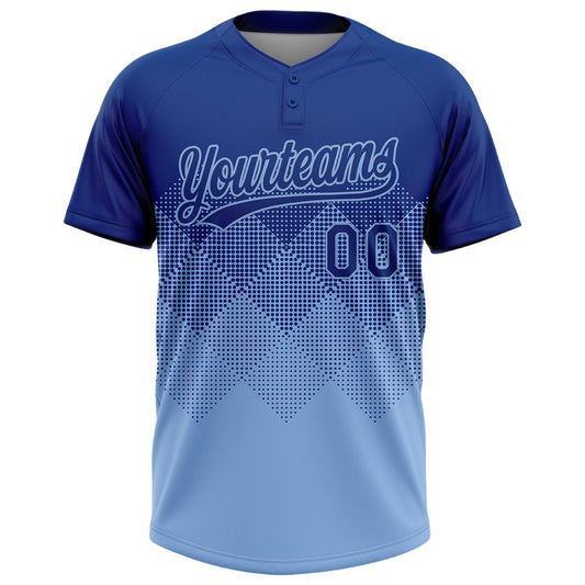 Custom Royal Light Blue 3D Gradient Square Shape Two-Button Unisex Softball Jersey Limited